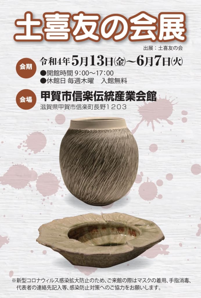 信楽伝統産業会館にて「土喜友の会展」が開催されます。 信楽焼の伝統を受け継ぐ作家の皆さんによる作品の展示をご覧ください。